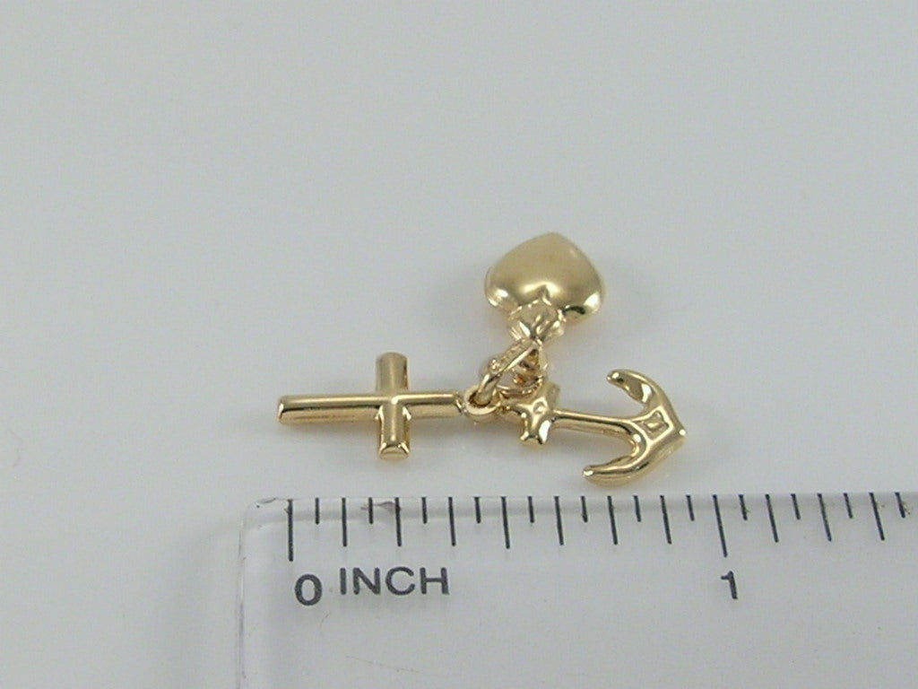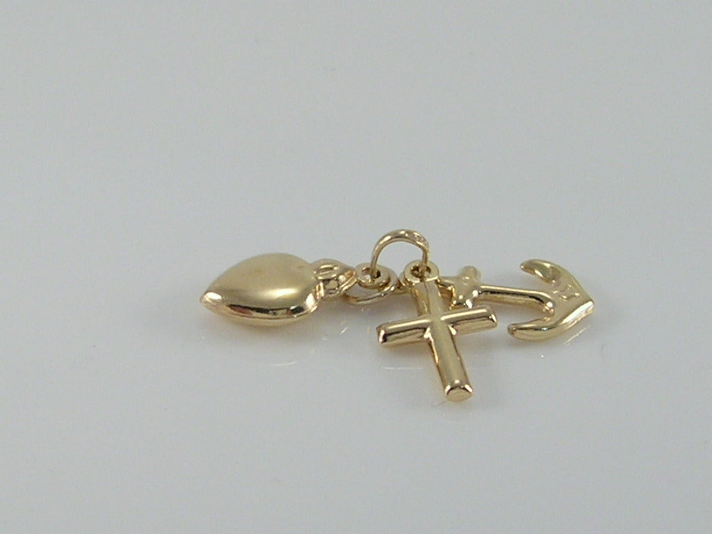 Vintage 3D 9ct gold faith, hope & charity charm pendant...each little charm dangles freely from bail ring
