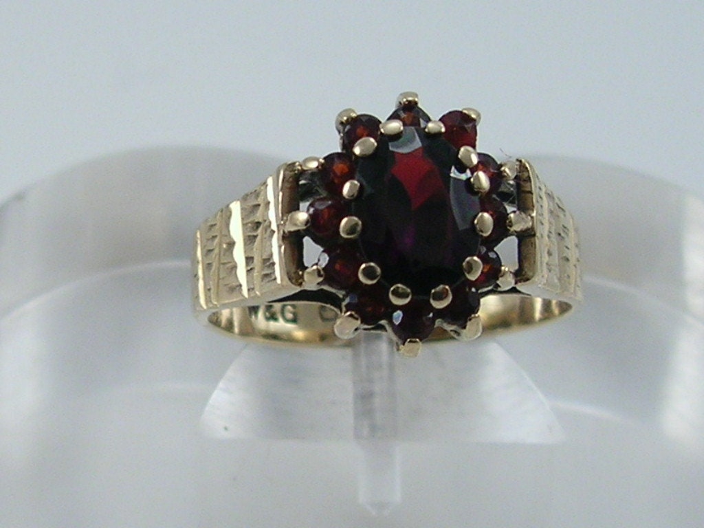 Vintage 9ct gold garnet cluster ring