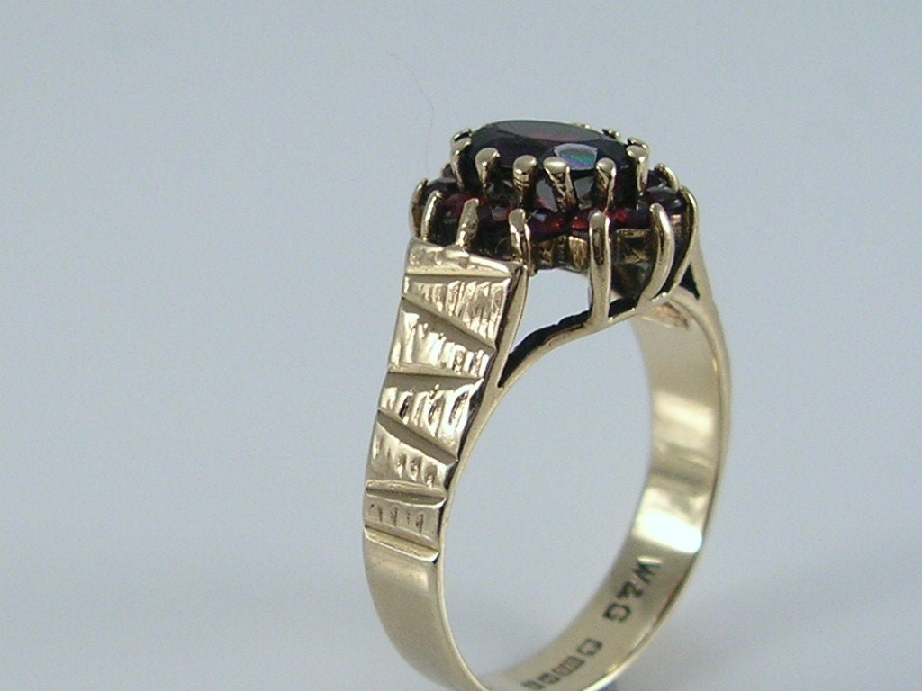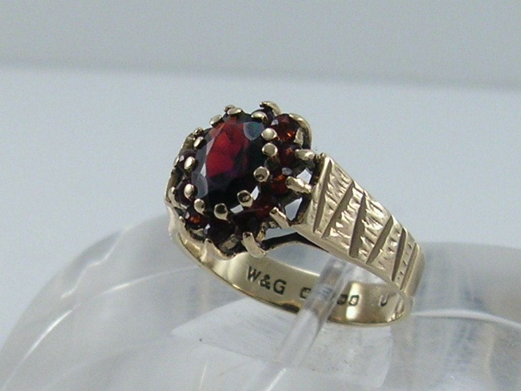Vintage 9ct Gold Garnet Cluster Ring H/MK 1976