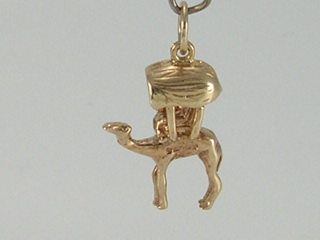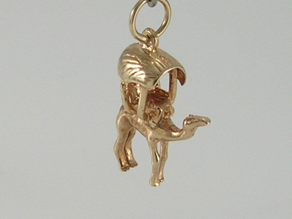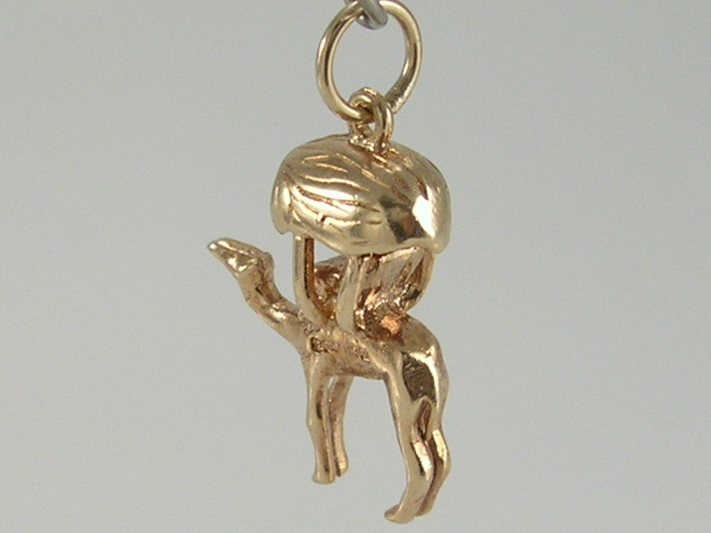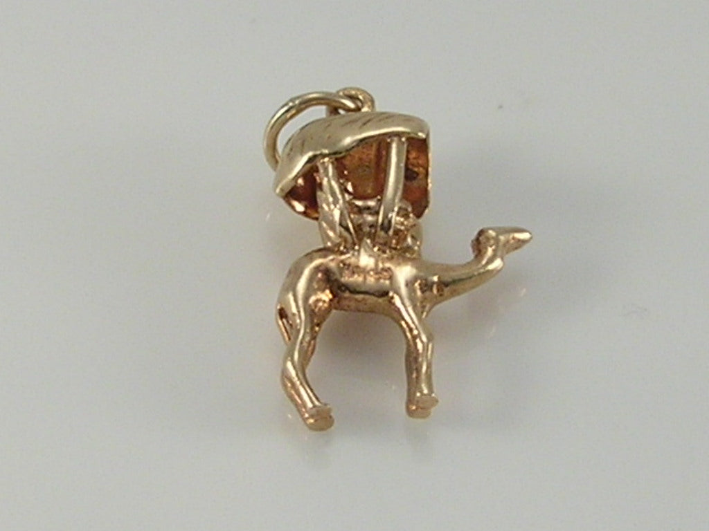 Vintage 3D 9ct gold man riding camel in sedan chair charm pendant