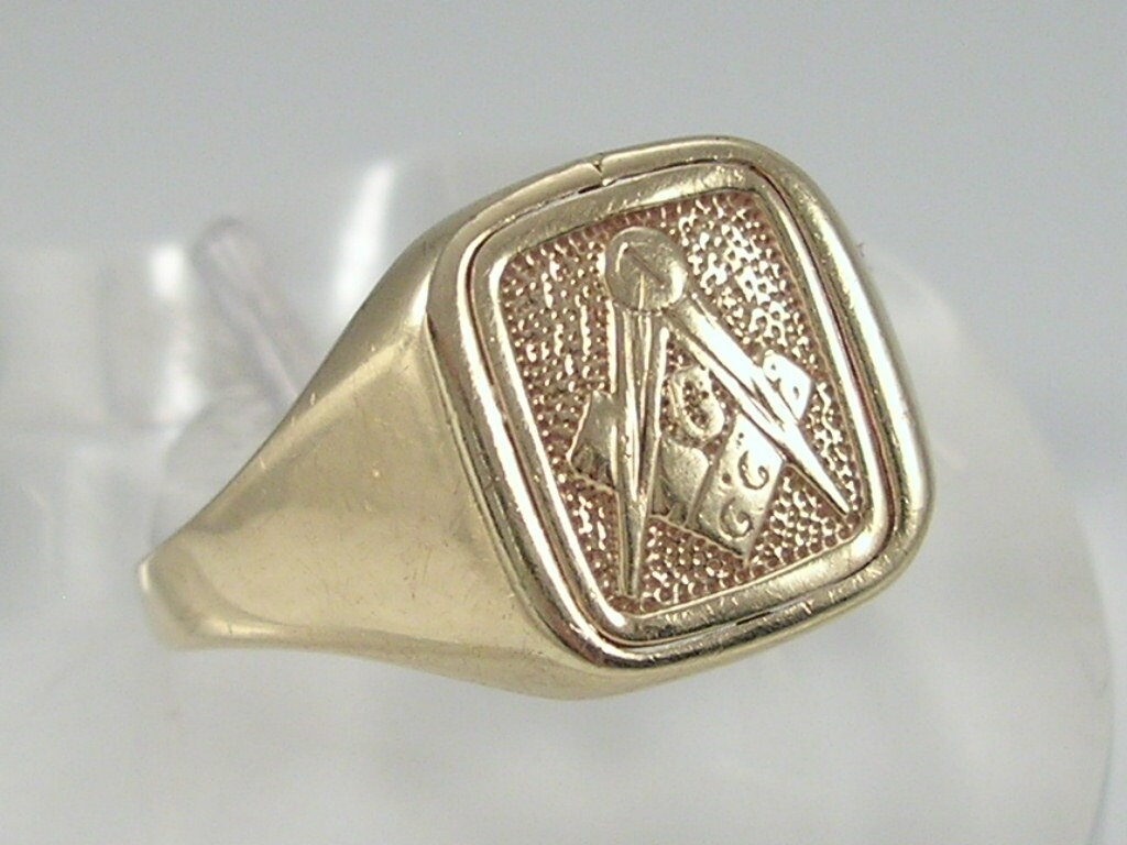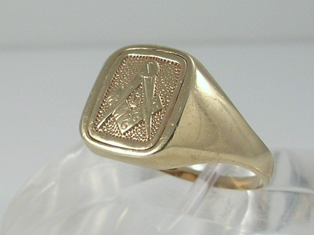 Vintage 9ct Gold Masonic Square & Compass Signet Ring H/MK