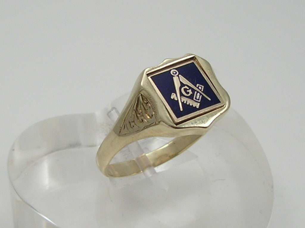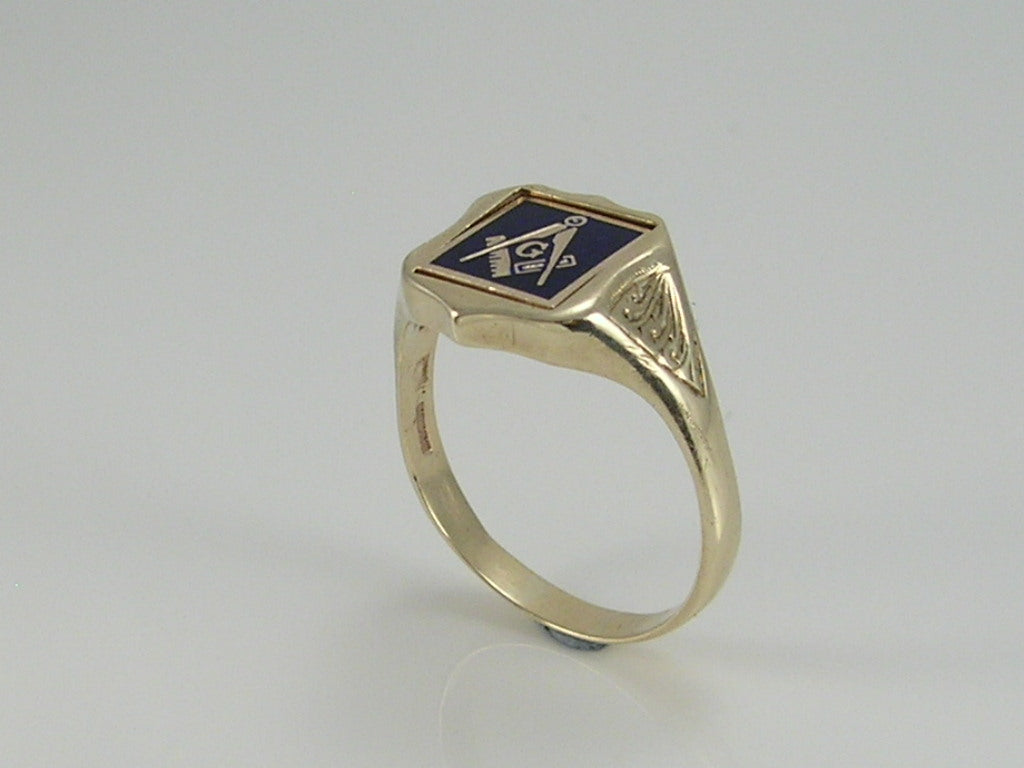 Vintage 9ct Gold Masonic Square & Compass Signet Ring H/MK