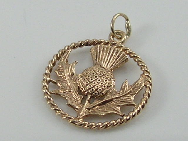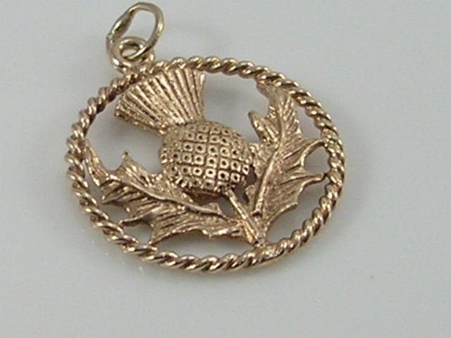 Vintage 9ct Gold Scottish Thistle Charm Pendant H/MK 1975