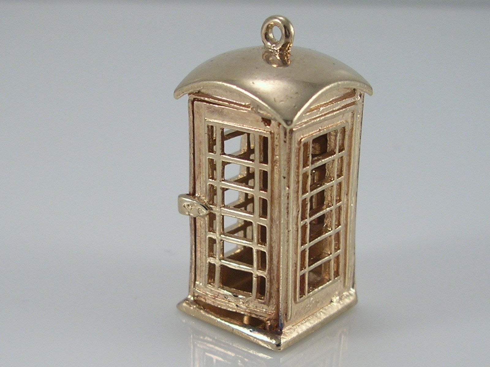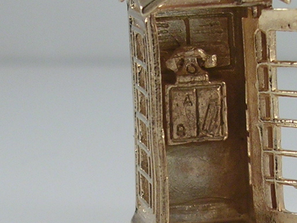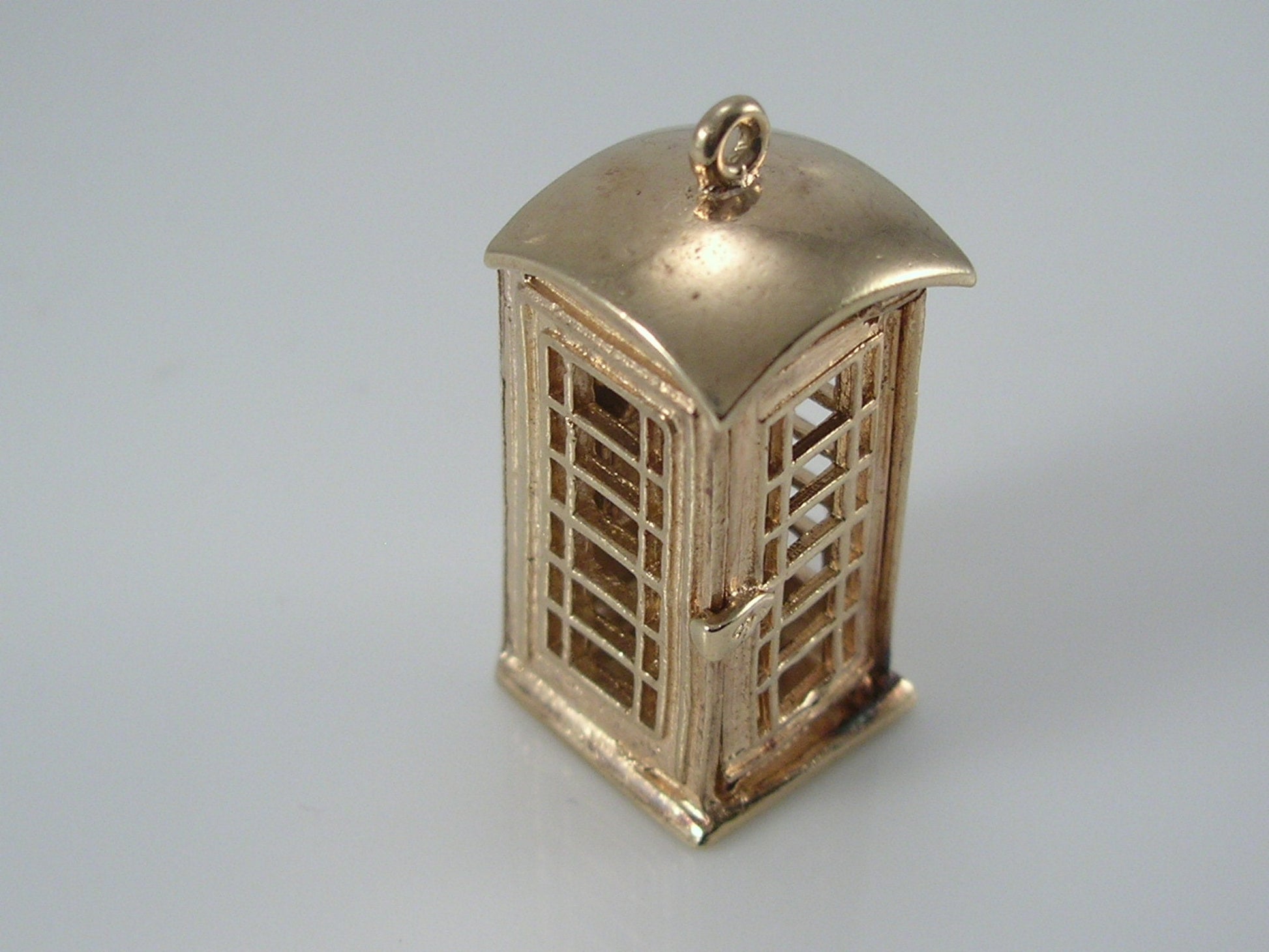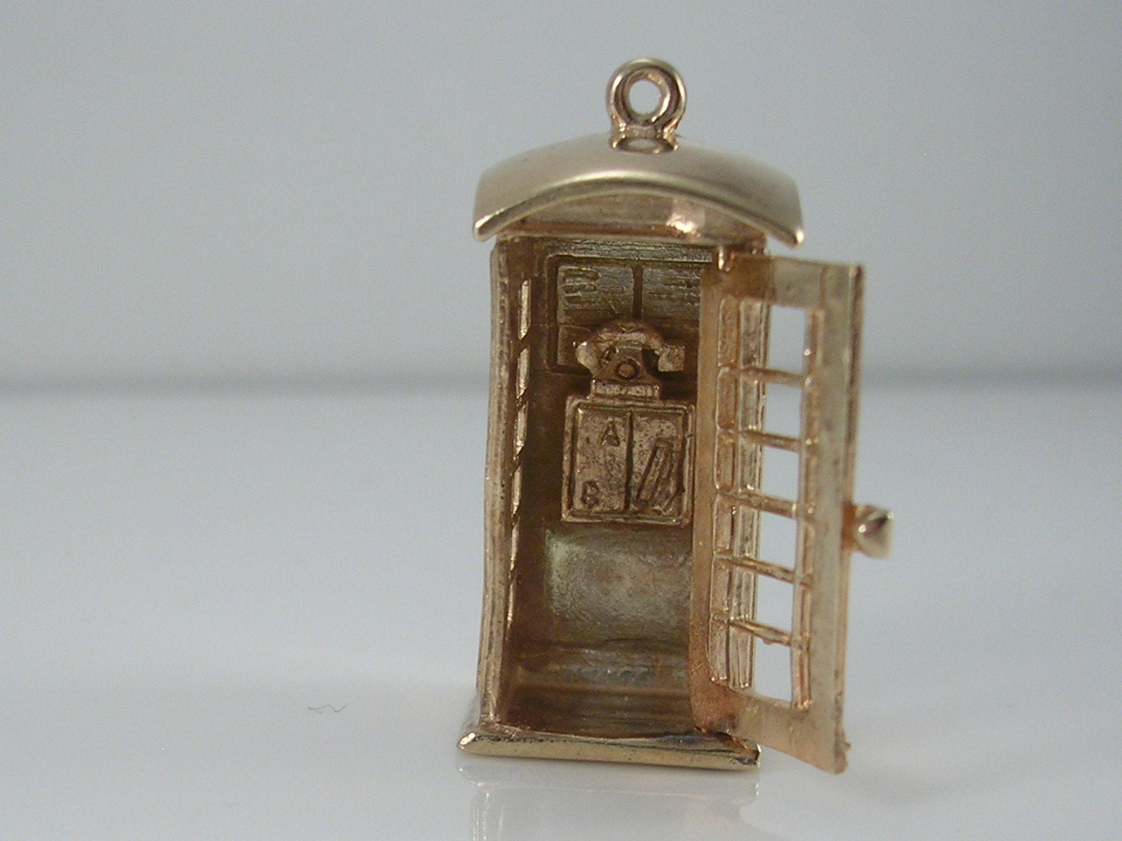 Vintage larger size 3D 9ct gold telephone box charm pendant...door opens and closes