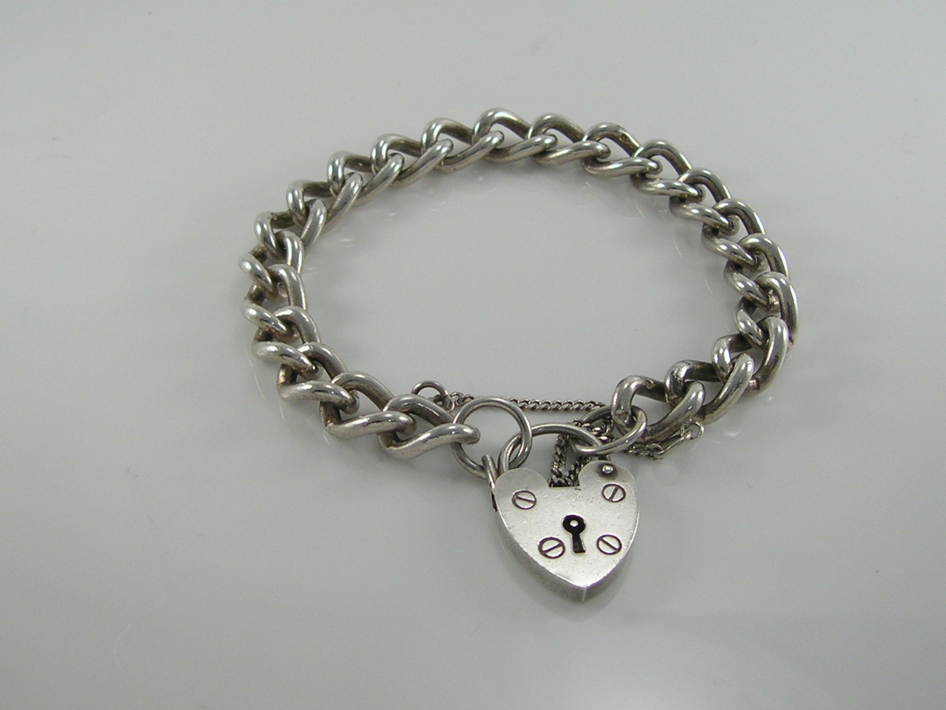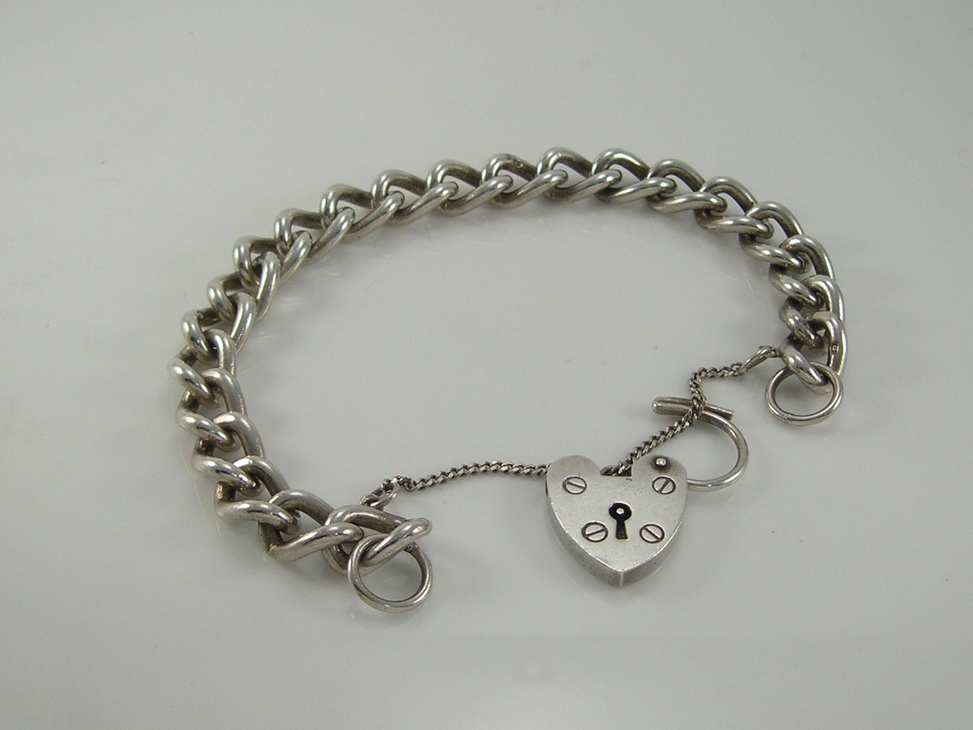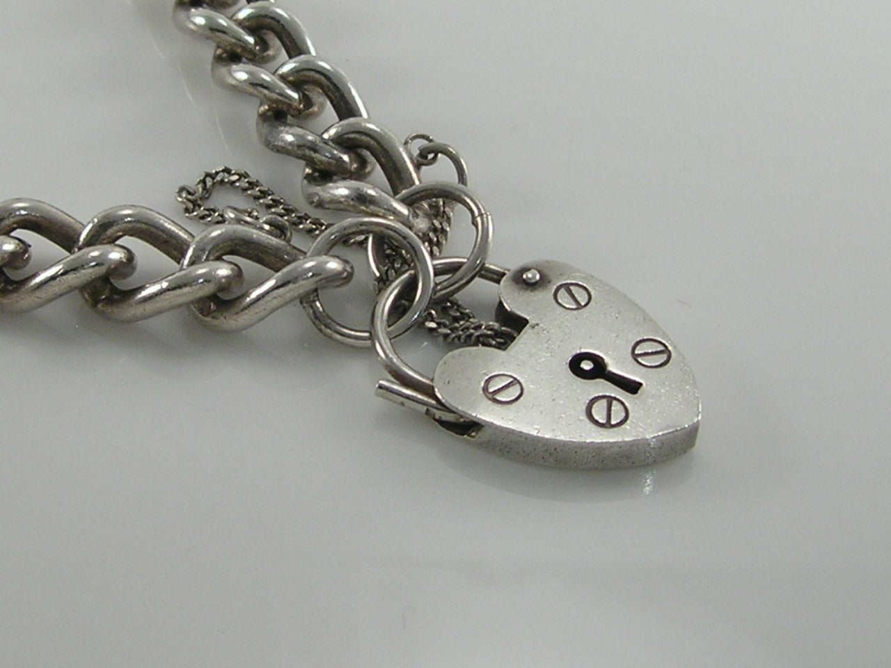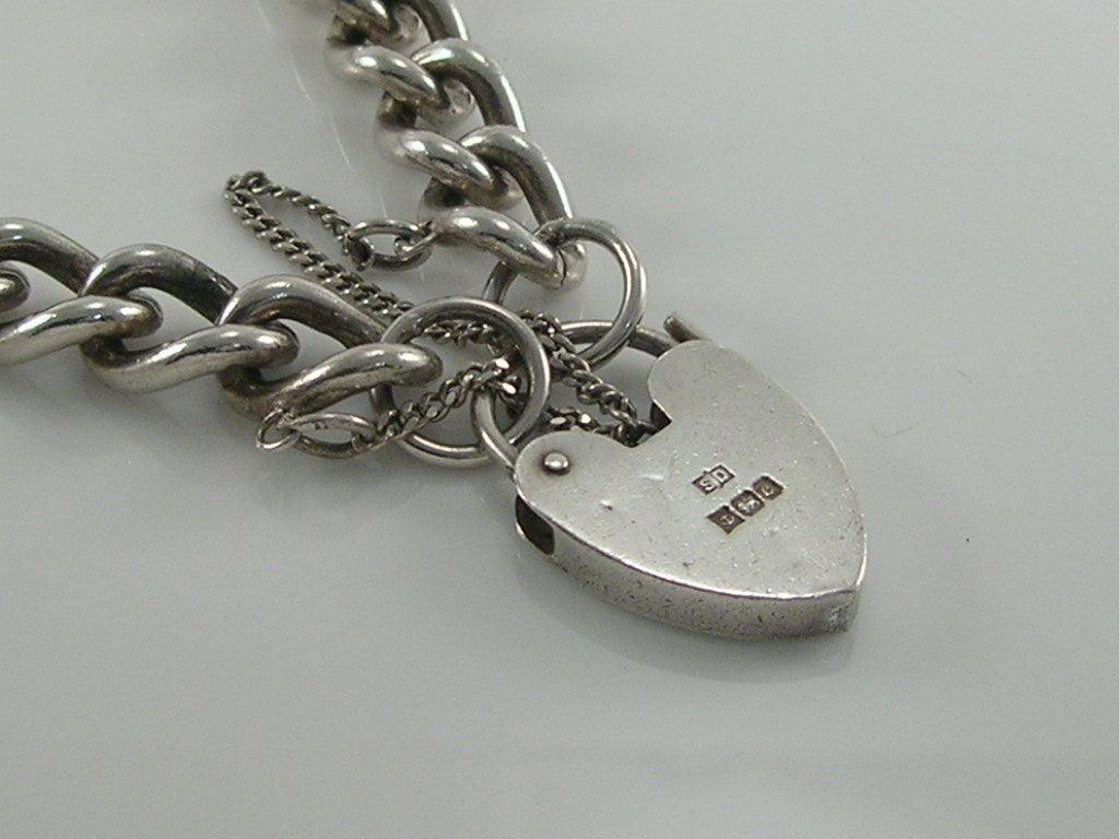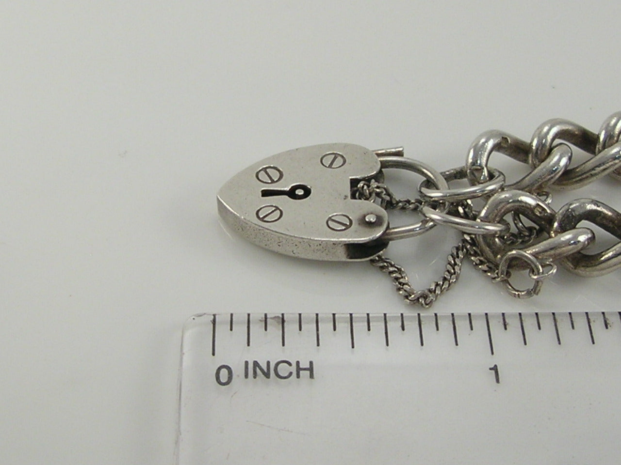 Vintage Sterling Silver Curb Link Padlock Bracelet 28.6g