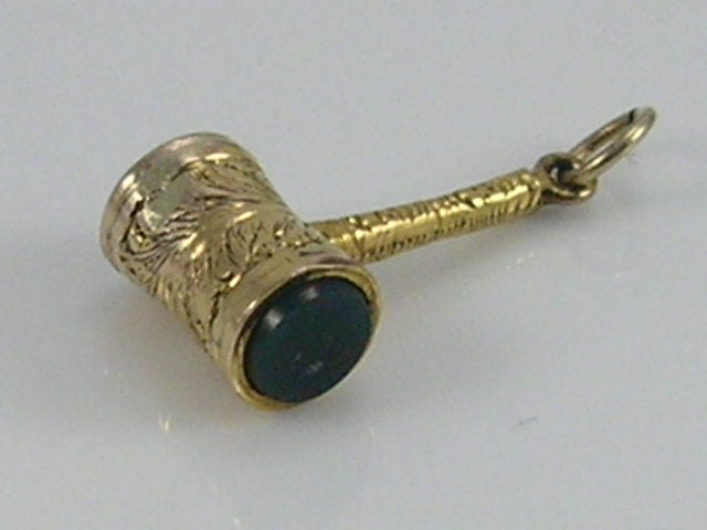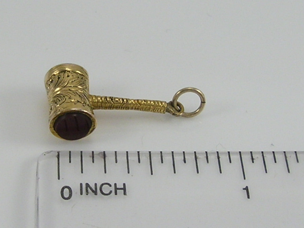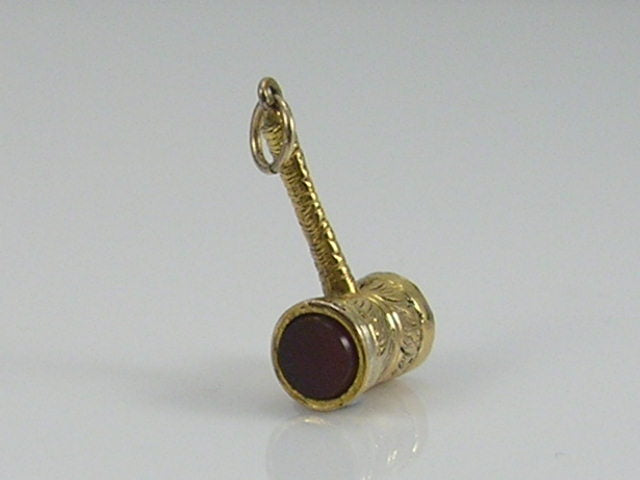 Vintage Victorian 3D 9ct Gold Auctioneer Gavel Mallet Bloodstone & Carnelian Charm Pendant